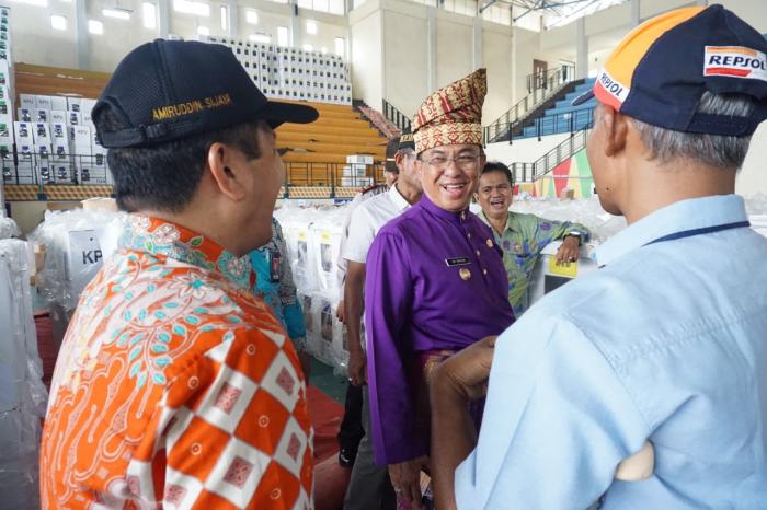 RIAUONE.COM, TEMBILAHAN- Dalam rangka rangka persiapan menjekang Pemilihan Umum (Pemilu), Bupati Indragiri Hilir (Inhil) HM Wardan, meninjau gudang logistik Komisi Pemilihan Umum (KPU) di Venue Futsal, Tembilahan, Kamis (4/4/2019) siang.