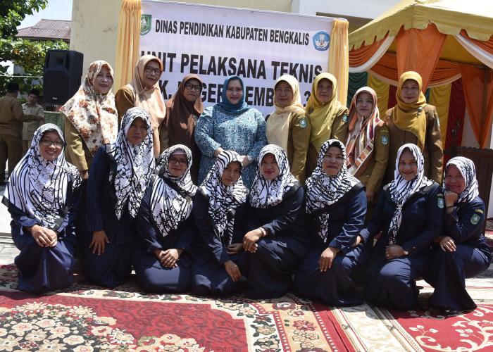 BENGKALIS, - Bunda Pendidikan Anak Usia Dini (PAUD) Kabupaten Bengkalis, Kasmarni Amril meresmikan status Negeri sekolah Taman Kanak-kanak (TK) Pembina 3 Kecamatan Bengkalis, Selasa (19/3).
