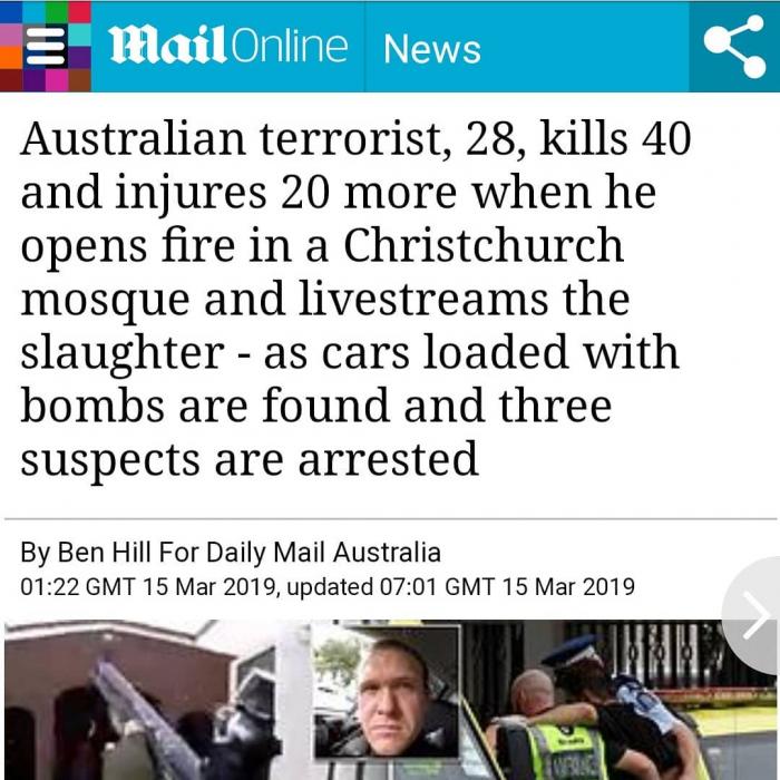 Teroris Australia Menembaki Puluhan Jemaah Sholat Jumat didalam Masjid Slandia Baru