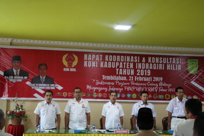 RIAUONE.COM, TEMBILAHAN - Untuk mensingkronisasikan program pembinaan Cabang Olahraga (Cabor) dalam menyongsong suksesnya Porprov X Riau tahun 2021, Pengurus Komite Olahraga Nasional Indonesia (KONI) Kabupaten Indragiri Hilir melaksanakan rapat koordinasi