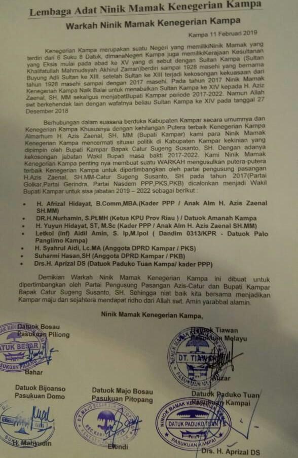Hitungan Jam Pasca Pelantikan, Ninik Mamak Keluarkan Warkah Pendamping Catur