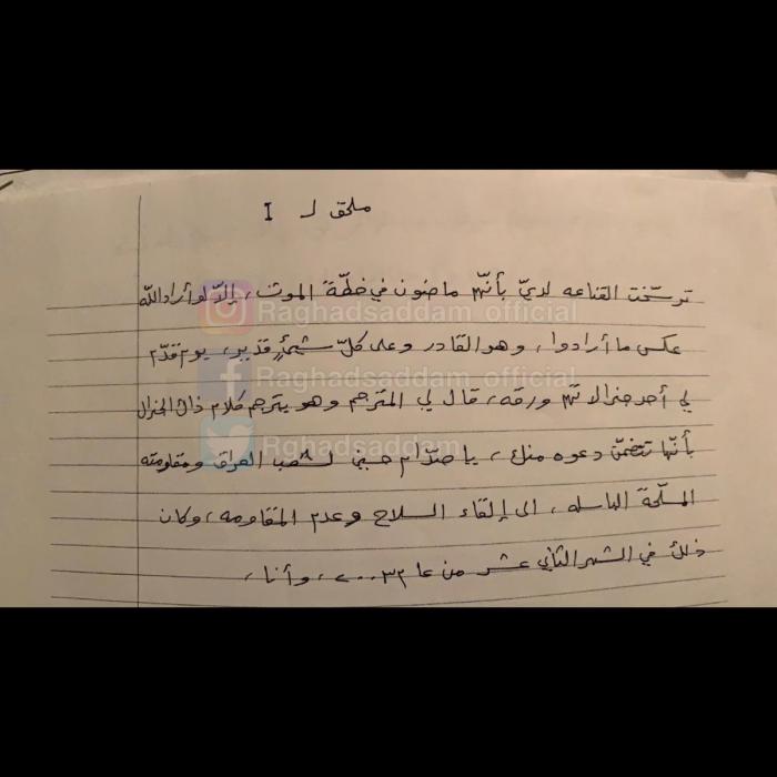 Beredar Tulisan Tangan Saddam Hussein tentang Kematian