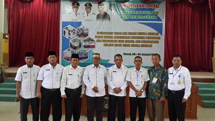 DUMAI - Sebanyak 220 Kepala Sekolah (Kepsek) se-Kota Dumai mengikuti Rapat Kerja (Raker) Optimalisasi tugas dan fungsi Kepala Sekolah dalam rangka mewujudkan ekosistem pendidikan dan kebudayaan yang unggul dan berkarakter.