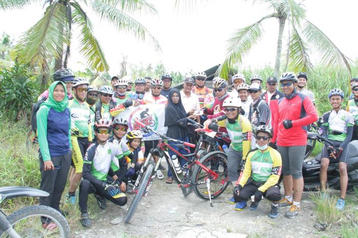 RIAUONE.COM, TEMBILAHAN - Komunitas pencinta olahraga sepeda Gowes Tembilahan Community (GTC) bersama Kuala Enok Gowes menggelar kegiatan gowes bersama rute Tembilahan - Teluk Pinang, Kecamatan Gaung Anak Serka, Minggu (20/01/2019).