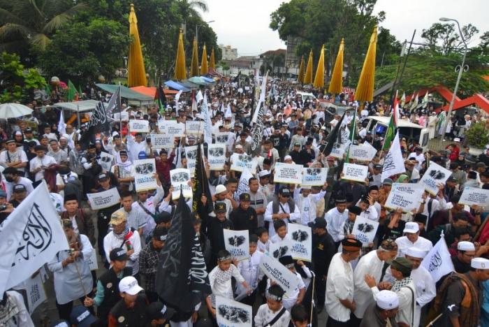 DUNIA, - Ribuan demonstran dukung Uighur melaksanakan ibadah shalat ashar berjamaah di depan Gedung Kedubes Republik Rakyat Cina (RRC) di Jalan Mega Kuningan No 2. Kuningan , Jakarta Selatan, Jumat, (21/12).