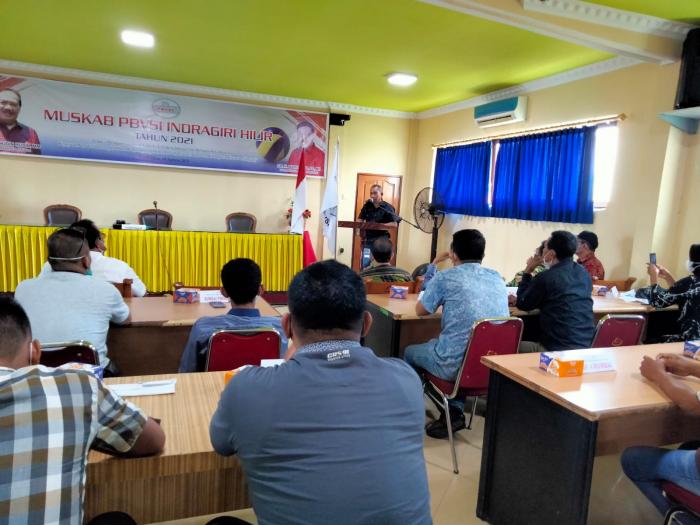 RIAUONE.COM, TEMBILAHAN - H Raja Iriansyah terpilih sebagai Ketua baru Pengurus Cabang Persatuan Bola Voli Seluruh Indonesia (PBVSI) Kabupaten Indragiri Hilir periode 2021-2025 pada Musyawarah Kabupaten (Muskab) PBVSI yang digelar di Aula Hotel Telaga Puri Tembilahan, Sabtu, (14/8/2021).