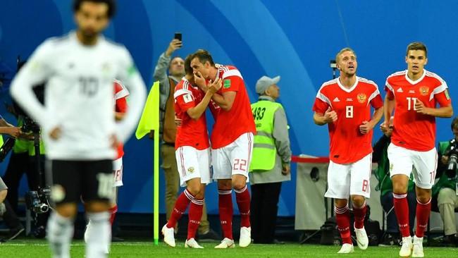 SAINT-PETERSBUR - Timnas Rusia tampil gemilang saat menghadapi Mesir di partai kedua dari Grup A Piala Dunia 2018. Tuan rumah menang 3-1 dan kian berpeluang lolos ke 16 besar.