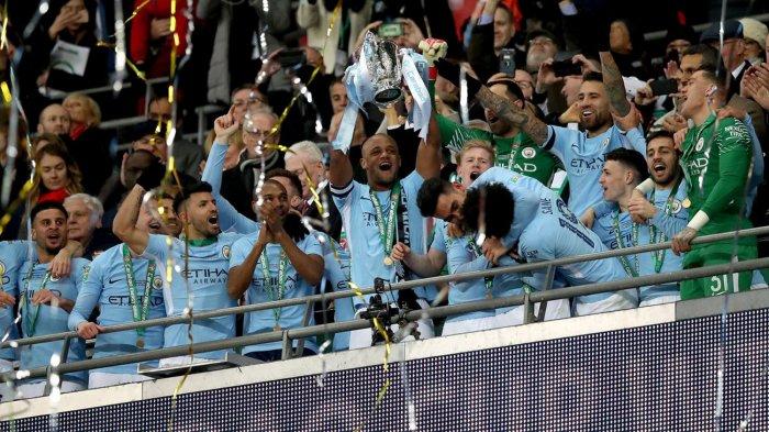 BOLLA, DUNIA, - Manchester City menyabet gelar Piala Liga Inggris (EFL Cup) 2018 seusai mengalahkan Arsenal dengan skor telak 3-0 pada partai final di Stadion Wembley, Senin dini hari WIB.