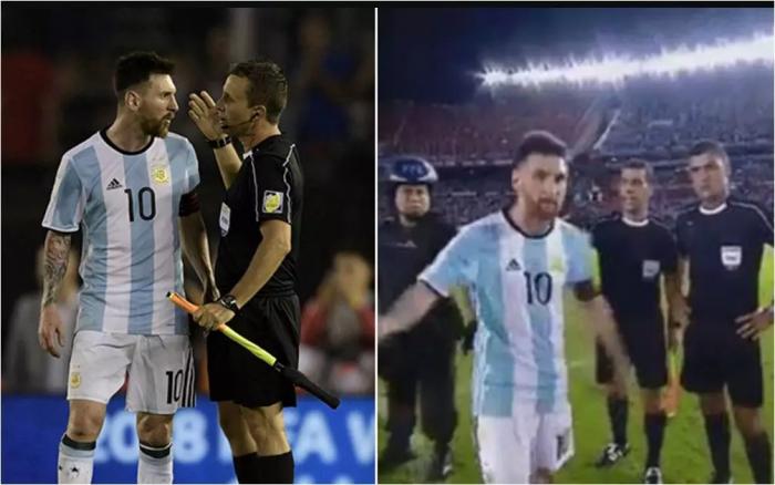 Messi sebagai kapten tim lalu menolak berjabat tangan dengan ofisial pertandingan.