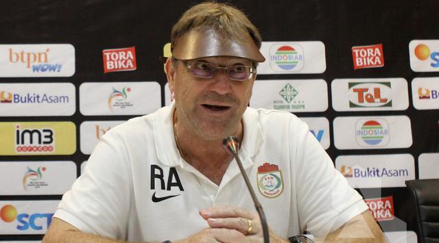 BANDUNG, - Pelatih PSM Makassar, Robert Alberts terpukau melihat jumlah jurnalis yang menantinya di ruang konferensi pers paska pertandingan antara tim asuhannya dengan Persib Bandung di Stadion Si Jalak Harupat, Soreang, Senin (6/2/2017). Pelatih PSM itu merasa seperti berada di Piala Dunia.