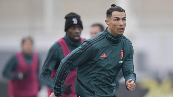 DUNIA, SPORT, BOLA - Cristiano Ronaldo memamerkan penampilan barunya saat mengikuti latihan persiapan menjelang pertandingan Serie A Liga Italia melawan Cagliari. Bintang Juventus ini tampil dengan kuncir kuda.